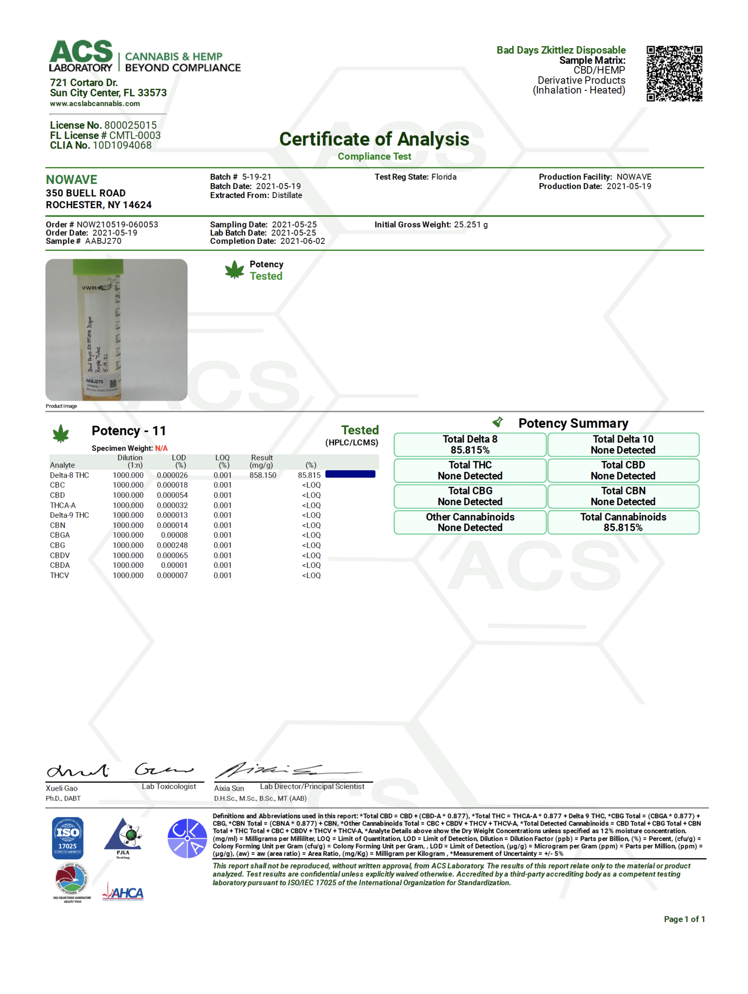 The Bad Days brand was designed around a holistic approach to improving your daily ailments. All Bad Days products are made from the cleanest and purest raw material hemp and terpenes. Each disposable contains 84.72% delta 8 thc and organic terpenes. Every disposable is lab tested and contains 1gram of liquid.