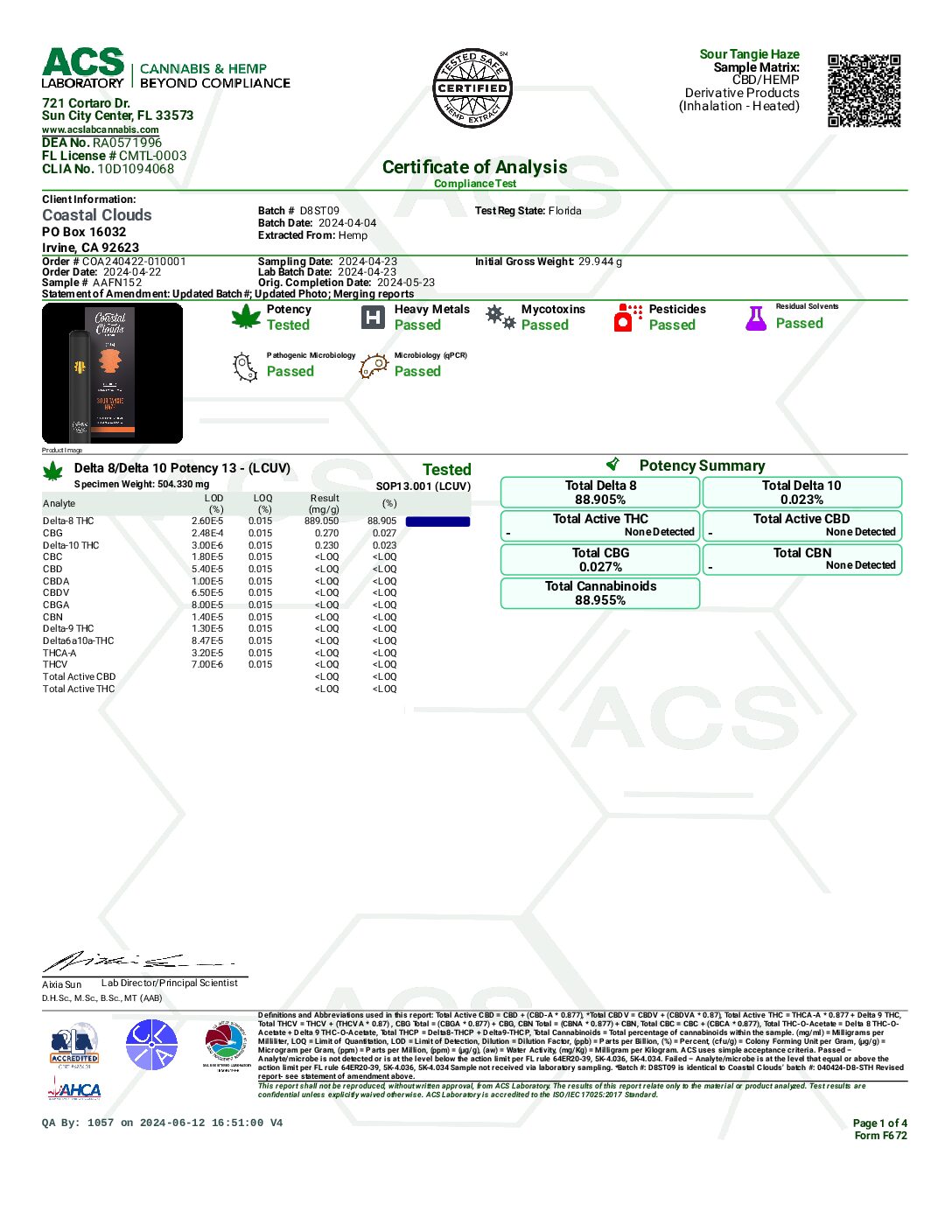 Coastal Clouds | Delta-8 THC + HHC-P 2g disposables – Sour Tangie Haze