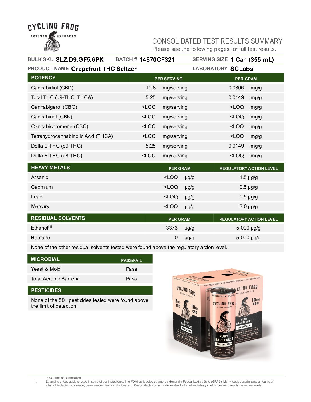 Cycling Frog | 5mg THC + 10mg CBD Seltzer – Ruby Grapefruit