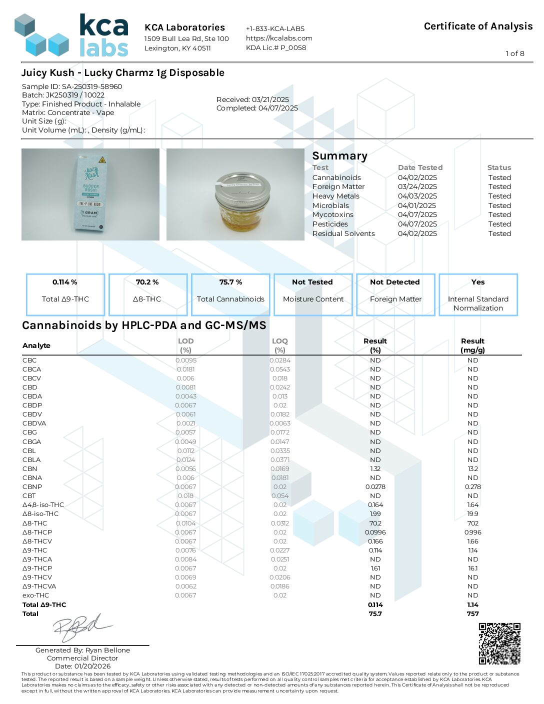 JUICY KUSH BUDDER ROSIN THC-P LIVE ROSIN 1 G: LUCKY CHARMZ